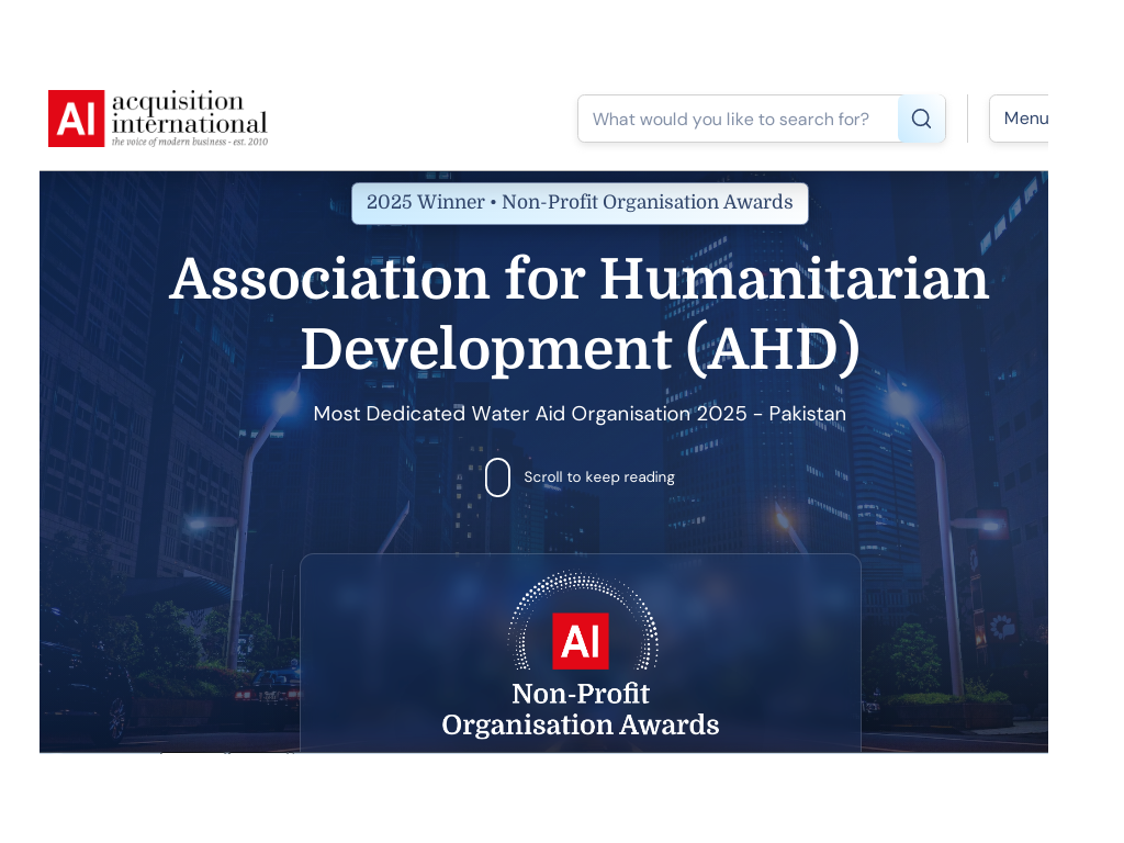 Acquisition International has officially released its 2025 Global Excellence Awards winners list, recognizing outstanding organizations making a meaningful global impact. Among the prestigious honorees, the Association for Humanitarian Development (AHD) has been awarded the title of “Most Dedicated Water Aid Organisation 2025 – Pakistan.”